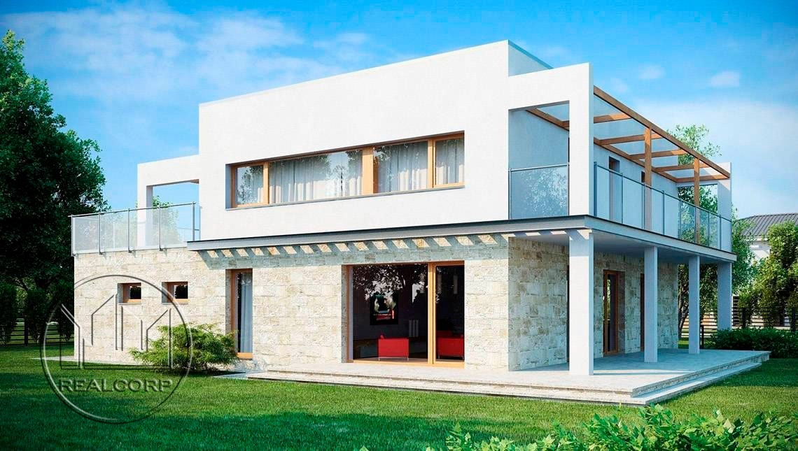 Проект двухэтажного жилого дома с плоской кровлей, с застекленными террасами и розарием в саду Общая площадь - 239,20 кв.м Стоимость данного дома, материал и работа 18 200 000 (Проекты даны в ознакомительных целях) 📌Помните, Вы всегда можете внести изменения в типовой проект! Или заказать строительство дома по своему проекту. Комплектация: 1. Фундамент: плита , свайно ростверковый , ленточный 2. Бетонные полы 3. Несущие стены из газобетона 400 мм 4. Межкомнатные перегородки из газобетона толщиной 100мм 5. Фасад штукатурка по базальтовому утеплителю ( возможен ваш вариант отделки фасада ) 6. Разгрузочный армопояс 7. Кровля теплая 100-150 мм экструдированный пенополистирол. 8. Покрытие кровли 2 слоя Технониколь Унифлекс 9. Внутренняя водосточная система 10. Кирпичные вентшахты 11. Пластиковые окна Rehau 60 мм.