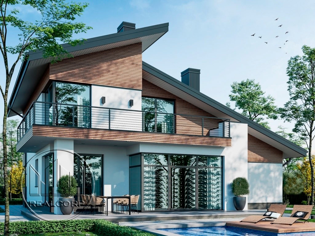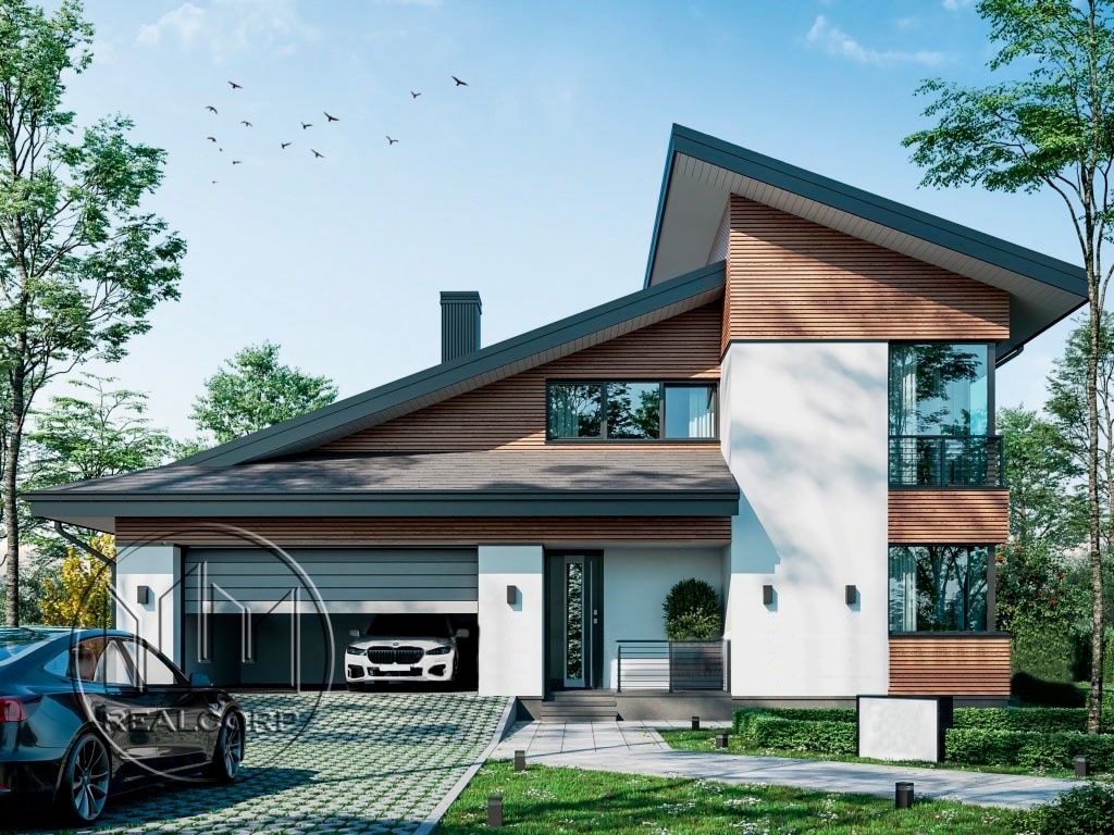 Планировка комфортного современного загородного дома в стиле хай-тек Общая площадь: 222,28 м2 Стоимость данного дома, материал и работа 19 950 000 (Проекты даны в ознакомительных целях) 📌Помните, Вы всегда можете внести изменения в типовой проект! Или заказать строительство дома по своему проекту. Комплектация: 1. Фундамент: плита , свайно ростверковый , ленточный 2. Бетонные полы 3. Несущие стены из газобетона 400 мм. 4. Межкомнатные перегородки из газобетона толщиной 100мм 5. Фасад комбинированный: штукатурка по базальтовому утеплителю, облицовка деревянной рейкой ( возможен ваш вариант отделки фасада ) 6. Разгрузочный армопояс 7. Кровля теплая 200мм базальтовым утеплителем 8. Кровля двухскатная Металлочерепица производства Гранд Лайн 9. Подшив свесов кровли ПВХ софитом производства Гранд Лайн 10. Водосточная система производства Гранд Лайн диаметр 100мм 11. Кирпичные вентшахты 12. Трубчатое Снегозадержание производства Гранд Лайн 13. Капитальное Крыльцо 14. Пластиковые окна Rehau 60 мм.