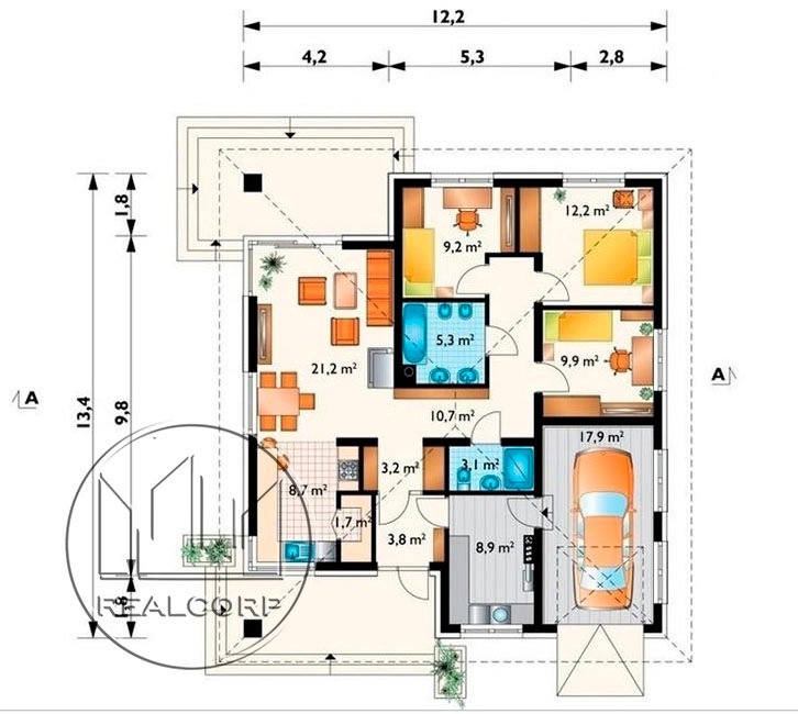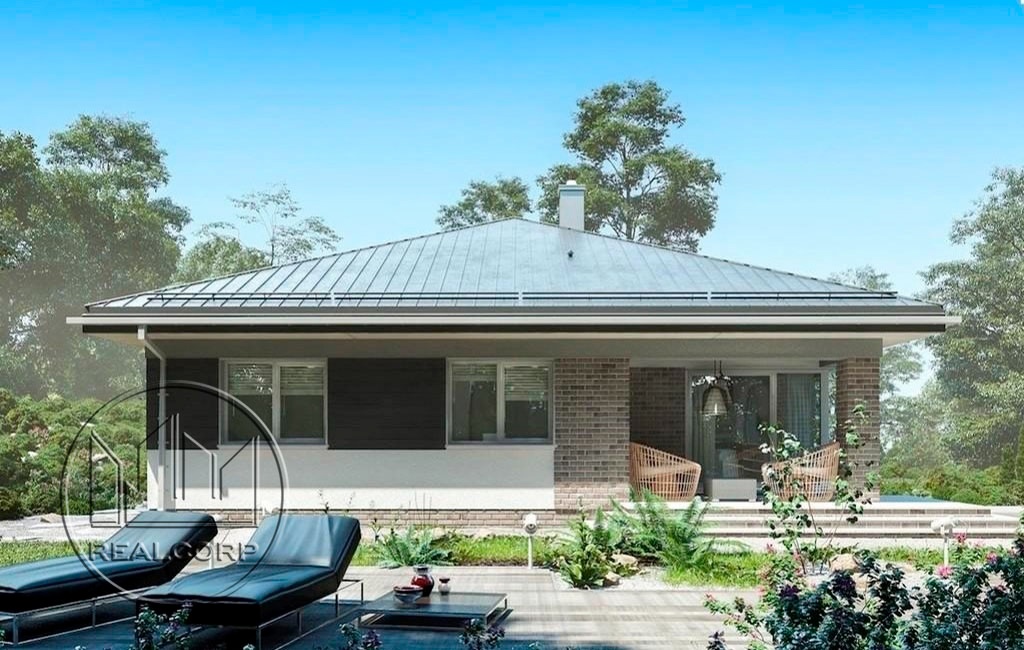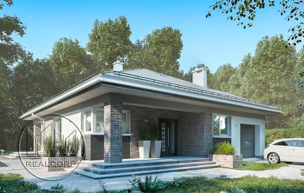 Дом с 3-мя спальнями и гостиной-столовой, с гаражом, котельной и террасой. Общая площадь - 115 кв.м Стоимость данного дома, материал и работа 8 600 000 (Проекты даны в ознакомительных целях) 📌Помните, Вы всегда можете внести изменения в типовой проект! Или заказать строительство дома по своему проекту. Комплектация: 1. Фундамент: плита , свайно ростверковый , ленточный 2. Бетонные полы 3. Несущие стены из газобетона 400 мм 4. Межкомнатные перегородки из газобетона толщиной 100мм 5. Фасад комбинированный кирпич, штукатурка, дерево ( возможен ваш вариант отделки фасада ) 6. Разгрузочный армопояс 7. Кровля теплая 200мм базальтовым утеплителем 8. Покрытие фальцевая кровля производства Гранд Лайн 9. Подшив свесов кровли ПВХ софитом производства Гранд Лайн 10. Водосточная система производства Гранд Лайн диаметр 100мм 11. Кирпичные вентшахты 12. Трубчатое Снегозадержание производства Гранд Лайн 13. Капитальное Крыльцо ( столбы, навес) 14. Пластиковые окна Rehau 60 мм.