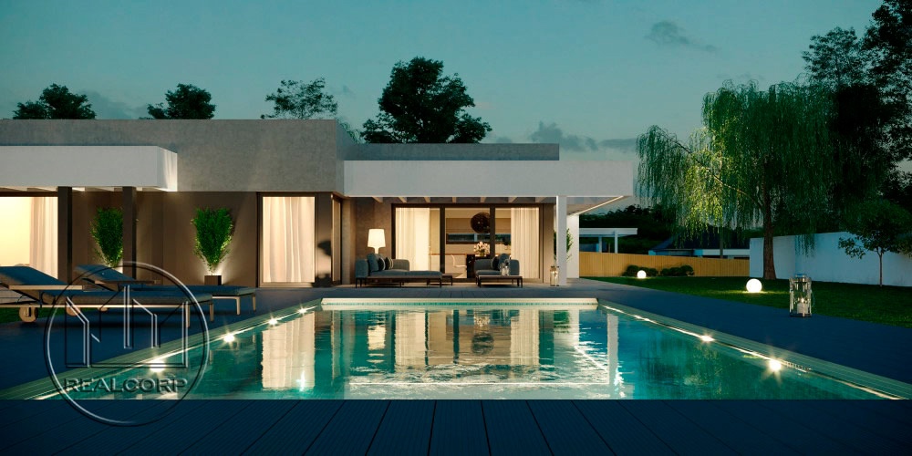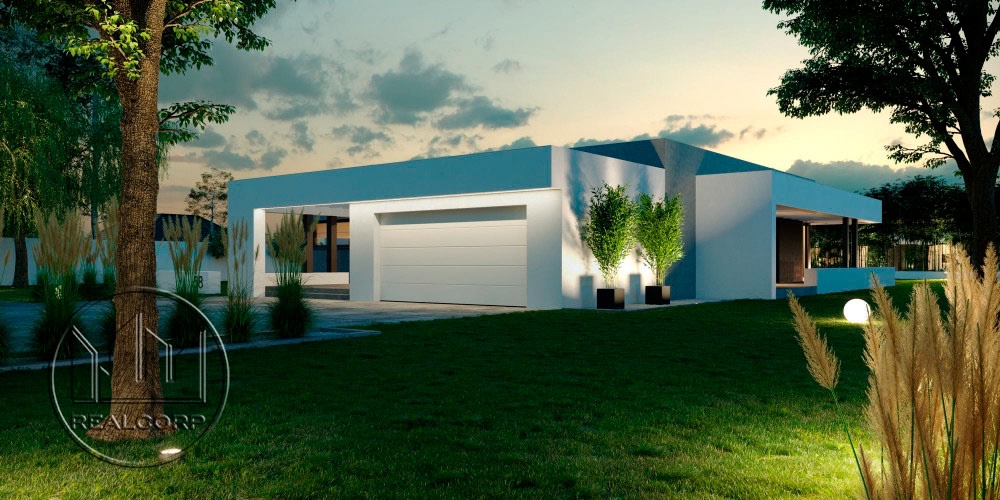 Проект одноэтажного жилого дома с плоской кровлей Общая площадь - 177 кв.м Кухня с кладовой, столовая-гостиная, 3 спальни, 2 санузла, гардеробная, постирочная, техническое помещение, гараж Стоимость данного дома, материал и работа 13 300 000 (Проекты даны в ознакомительных целях) 📌Помните, Вы всегда можете внести изменения в типовой проект! Или заказать строительство дома по своему проекту. Комплектация: 1. Фундамент: плита , свайно ростверковый , ленточный 2. Бетонные полы 3. Несущие стены из газобетона 400 мм 4. Межкомнатные перегородки из газобетона толщиной 100мм 5. Фасад штукатурка по базальтовому утеплителю ( возможен ваш вариант отделки фасада ) 6. Разгрузочный армопояс 7. Кровля теплая 100-150 мм экструдированный пенополистирол. 8. Покрытие кровли 2 слоя Технониколь Унифлекс 9. Внутренняя водосточная система 10. Кирпичные вентшахты 11. Пластиковые окна Rehau 60 мм.