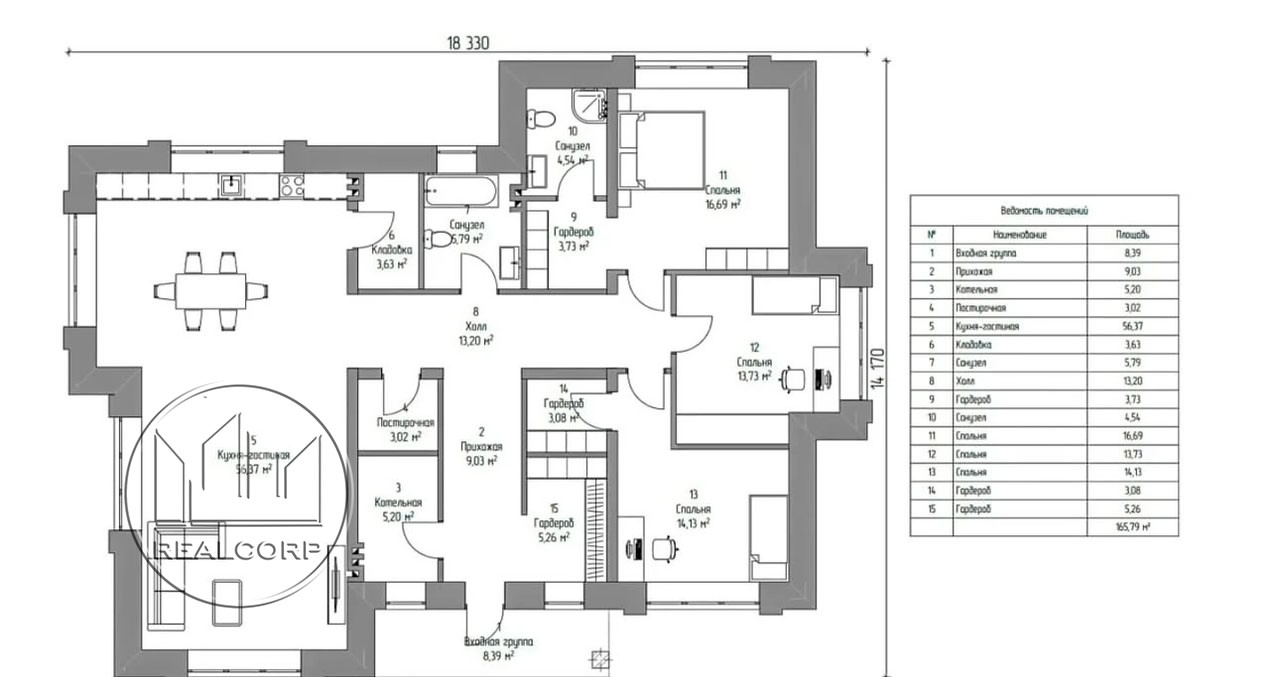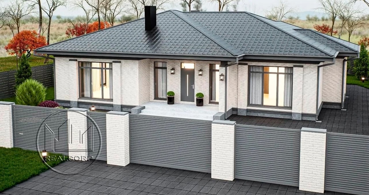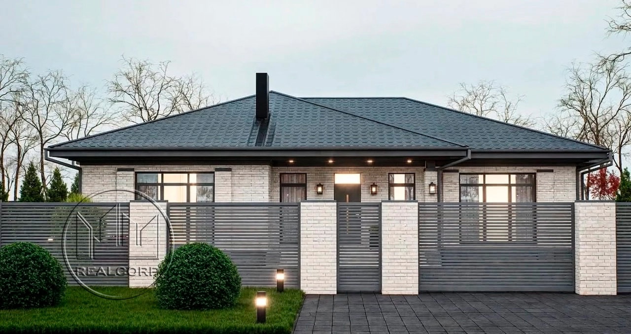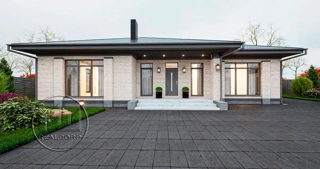 Одноэтажный дом 165м2 по типовому проекту. Стоимость данного дома, материал и работа 12 300 000 (Проекты даны в ознакомительных целях) 📌Помните, Вы всегда можете внести изменения в типовой проект! Или заказать строительство дома по своему проекту. Комплектация: 1. Фундамент: плита , свайно ростверковый , ленточный 2. Бетонные полы 3. Несущие стены из газобетона 400 мм 4. Межкомнатные перегородки из газобетона толщиной 100мм 5. Облицовка фасада одинарным кирпичом ( возможен ваш вариант отделки фасада ) 6. Разгрузочный армопояс 7. Кровля теплая 200мм базальтовым утеплителем 8. Кровля с настилом Металлочерепицы производства Гранд Лайн 9. Подшив свесов кровли ПВХ софитом производства Гранд Лайн 10. Водосточная система производства Гранд Лайн диаметр 100мм 11. Кирпичные вентшахты 12. Трубчатое Снегозадержание производства Гранд Лайн 13. Капитальное Крыльцо ( столбы, навес) 14. Пластиковые окна Rehau 60 мм.